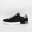 These black Dolce & Gabbana Portofino leather sneakers are rendered in a low top silhouette. Made in Italy, this style has a round toe, lace-up fastening, flat rubber sole and white logo lettering on the tongue, heel and midsole. It doesn't get much better than walking around in Portofino. Live la dolce vita in these Dolce & Gabbana trainers.