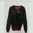 Pullover jumper featuring striped v-neck, raised stitching is inlaid on the elbows, woven ribbed hems with contrasting striping, inlaid themed lettering and hexagonal logo is sewn at left chest. Please note this item is unisex and sold in men's sizing.
