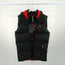 Super padded nylon down hooded vest. Iconic logo placed at the left chest. Contrasting zip front. Two slit pockets. Contrasting lining.