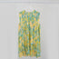 Featuring an Ortensie print, this beautiful pleated georgette dress is simply stunning. Round neck, sleeveless, belted waist with a pleated design and a short length.