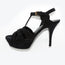 Signature Yves Saint Laurent Tribute sandals. Pre Saint Laurent days, these sandals are now a collectible item evident of the Stefano Pilati for YSL days, a classic item crafted in a glitter effect suede in black and designed with an adjustable ankle strap. 10.5cm heel height, 3cm platform.